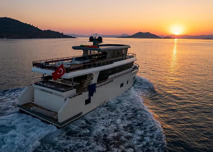 Embrace the serenity of the Aegean Region aboard the Explorer Yacht Fethiye, where luxury meets the enchanting beauty of coastal Turkey. Just 60 kilometers from Dalaman Airport, this exquisite vessel offers an idyllic retreat that's conveniently located a mere 4.5 kilometers from the bustling Fethiye Marina, allowing you to easily explore vibrant local attractions and enjoy the stunning seascapes. Located just six kilometers from the captivating Fethiye Museum, this luxurious yacht offers an unbeatable combination of culture and comfort, making it the perfect choice for your next getaway in this stunning region.